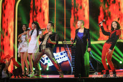 除去演出之外,舞台上还发生了一件十分有趣的事。为了营造出歌的意境,一只巨型的轻松熊被抬上舞台,置于台上。歌曲接近尾声,权振东走到台边了这只大熊的身边,之前纹丝不动的大熊竟然伸出手开始轻抚权振东的背,做出安慰的姿态,这只熊竟是真人扮的。轻松熊超萌的表现引发了现场一阵欢笑和掌声,给这段深情的表演画上了一个略微风趣的句号。(TG/文)