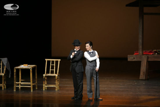 不得不提的是,演出形式很舞台剧,演出过程中,舞美队工作人员身着统一的民初背带工作服,将两盏聚光灯不时推上推下,走进舞台表演,不断“间离”故事情节的发展。甚至每一场都会出现一位演员跳出故事,以第三人称代序剧情进展的表演方式。